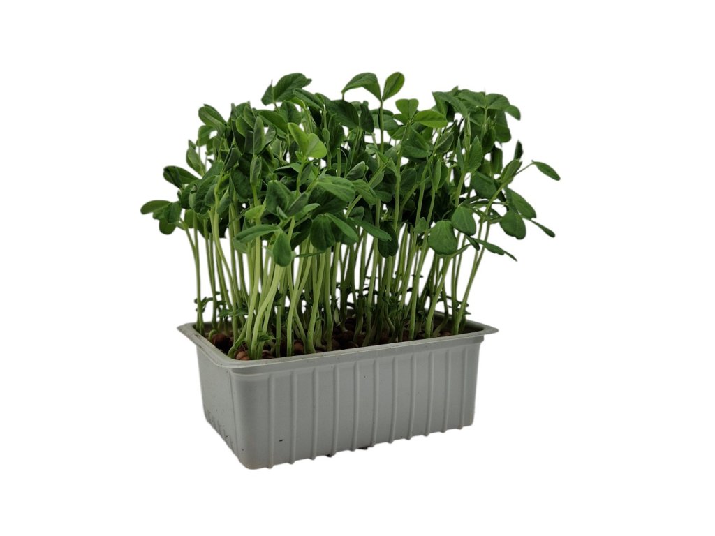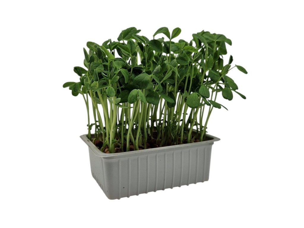 Mikrozelenina z hrášku (Pisum sativum) prináša sviežu, sladkú chuť, podobnú čerstvému hrášku, a je obľúbená pre svoj vysoký obsah živín a jednoduché využitie v kuchyni. Tieto mladé rastlinky, zbierané už 7-10 dní po výsadbe, majú výnimočnú koncentráciu vitamínov A, C, a K, ako aj kyseliny listovej, železa a vlákniny. Táto kombinácia živín podporuje imunitný systém, zdravie kostí, trávenie a znižuje zápaly.
